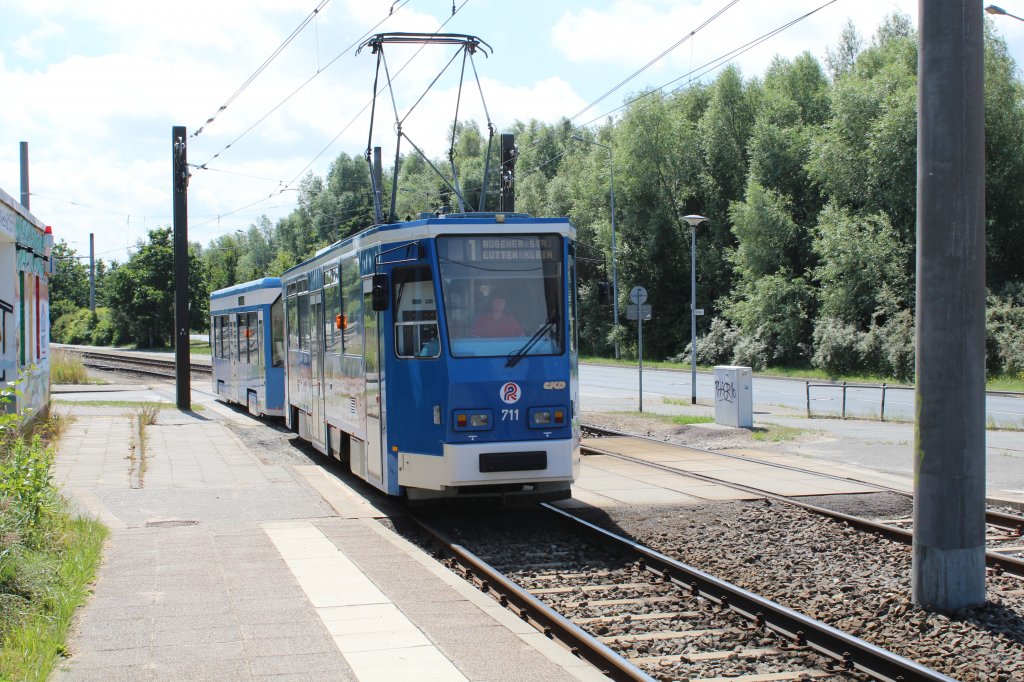 Rostock RSAG SL 1 (T6A2M 711) Toitenwinkel, Hafenallee (Endstelle, Ankunftshaltestelle) am 16. Juli 2013.