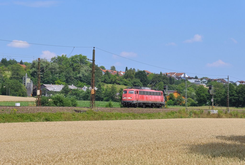 111 075 ist mit dem IRE 4229 nach Lindau HBF auf der KBS 750 unterwegs.Bild entstand bei Ebersbach an der Fils am 27.7.2013
