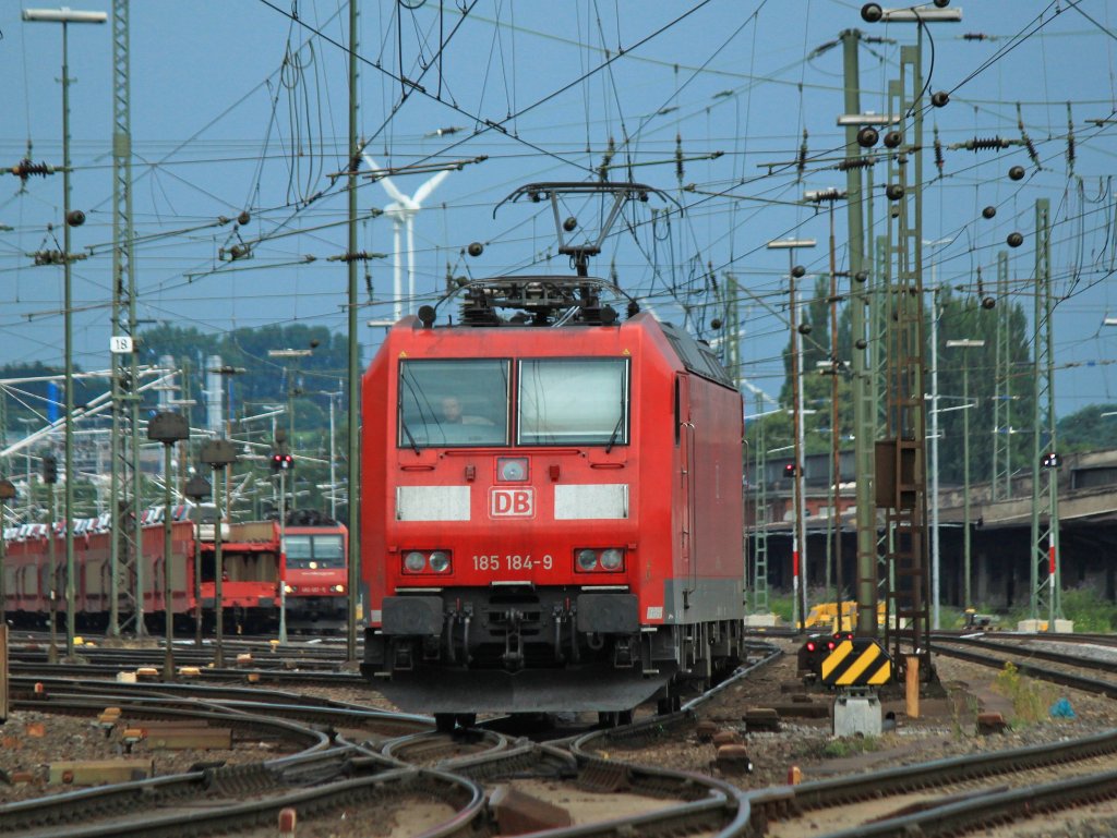 185 184-9 hat am 27.07.2013 einen Autozug für Belgien in Aachen West abgehangen und rangiert nun zu ihrem Stellplatz.