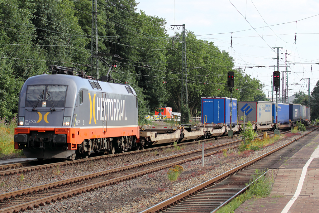 HKX 1804 bei der Durchfahrt in Recklinghausen als Schublok diente ES 64 U2-034 am 26.7.2013
