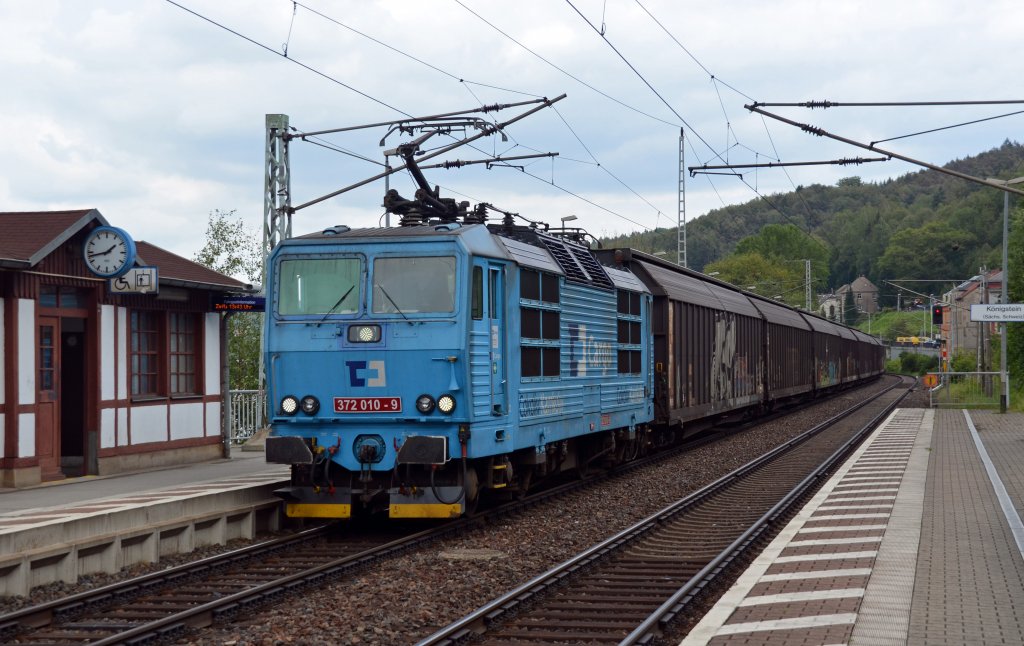 Am 30.06.13 rollte 372 006 mit einem gemischten Güterzug durch Königstein Richtung Dresden.