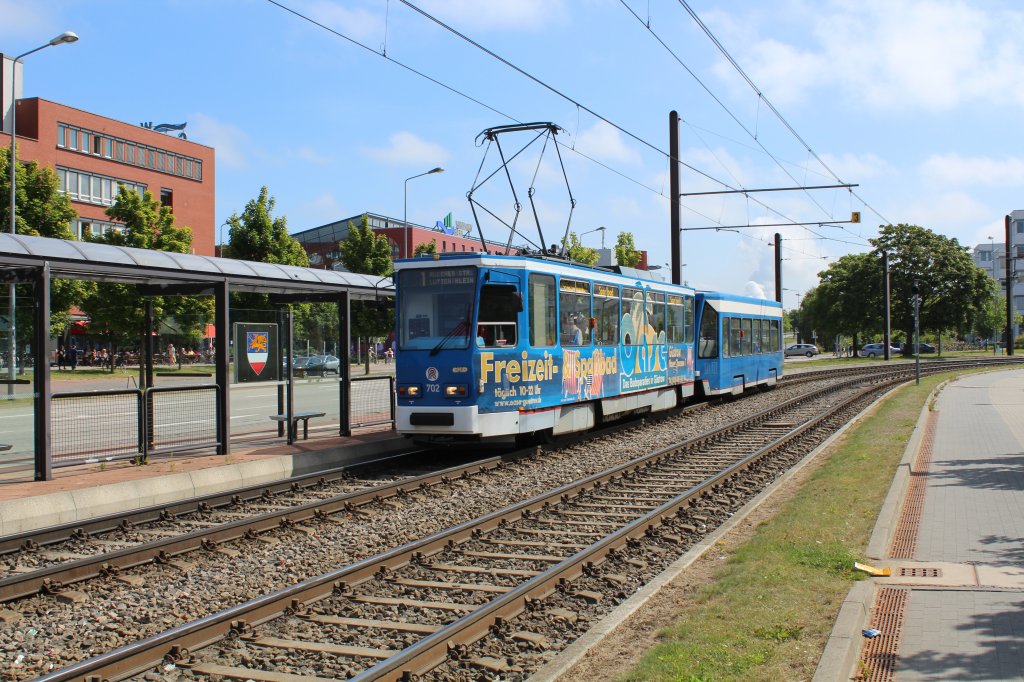 Rostock RSAG SL 1 (T6A2M 702 + Bombardier-NB4WDE 751) Warnowallee / Lütten Klein Zentrum am 16. Juli 2013.
