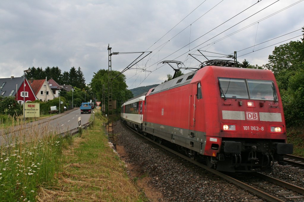 101 062-8 mit dem EC 9 am 25.06.13 kurz nach der Durchfahrt in Schallstadt.