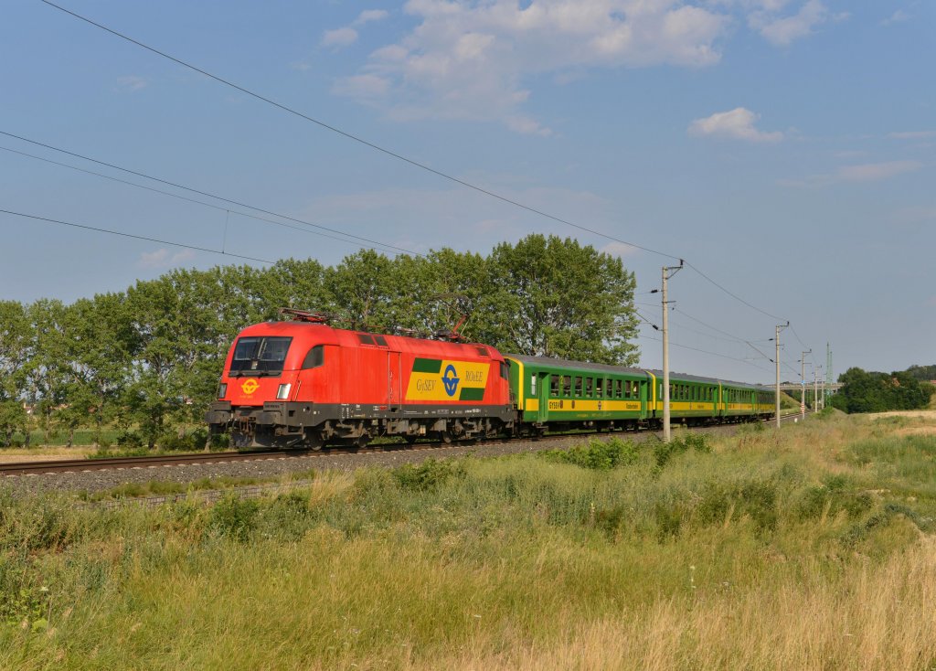 Nur +110 Minuten Verspätung hatte EC 378 Bratislava-Binz,am 27.Juli 2013,bei der Ankunft in Bergen/Rügen.