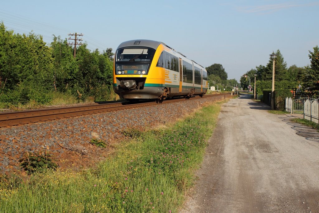 Am 13.07.13 war 642 413 der ODEG wie so oft zwischen Cottbus und Zittau unterwegs und wurde beim letzten Rufschranken-Bahnübergang der KBS 220 bei Spree fotografiert.