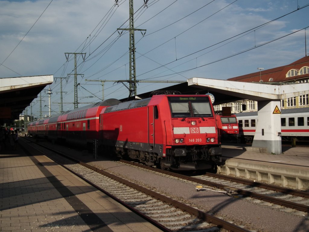 Am 26.07.2013 hat 146 203 mit ihrer RB von Stuttgart nach Singen (Htw) den Endbahnhof erreicht.