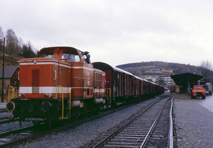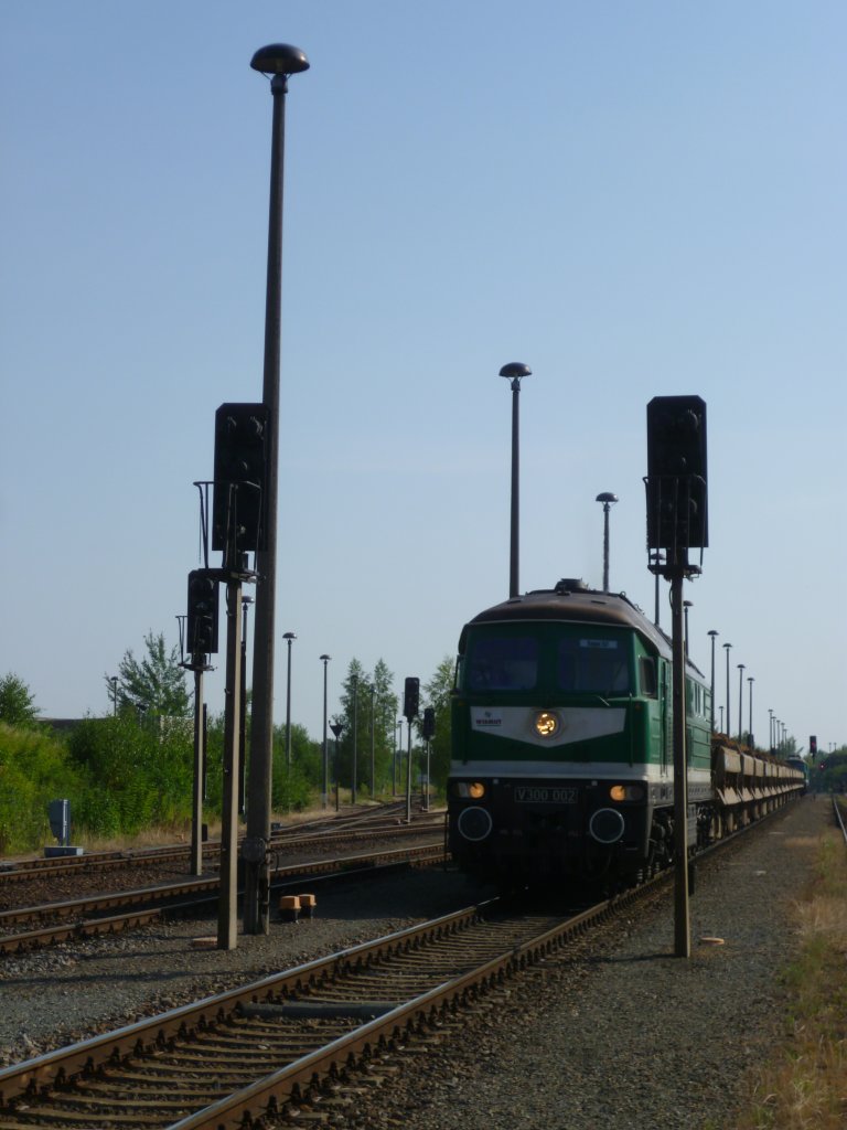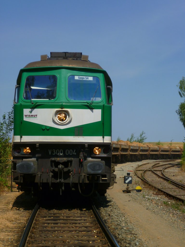 Am Samstag den 27.07.13 ging es mit der IG 58 3047 Glauchau (Veranstalter)und der Erzgebirgsbahn (642 237) auf eine Exkursionsfahrt zur Wismut. Hier die V300 004 beim Entladen in Lichtenberg. Alle Bilder wurden unter Aufsicht der Veranstalter erlaubt.