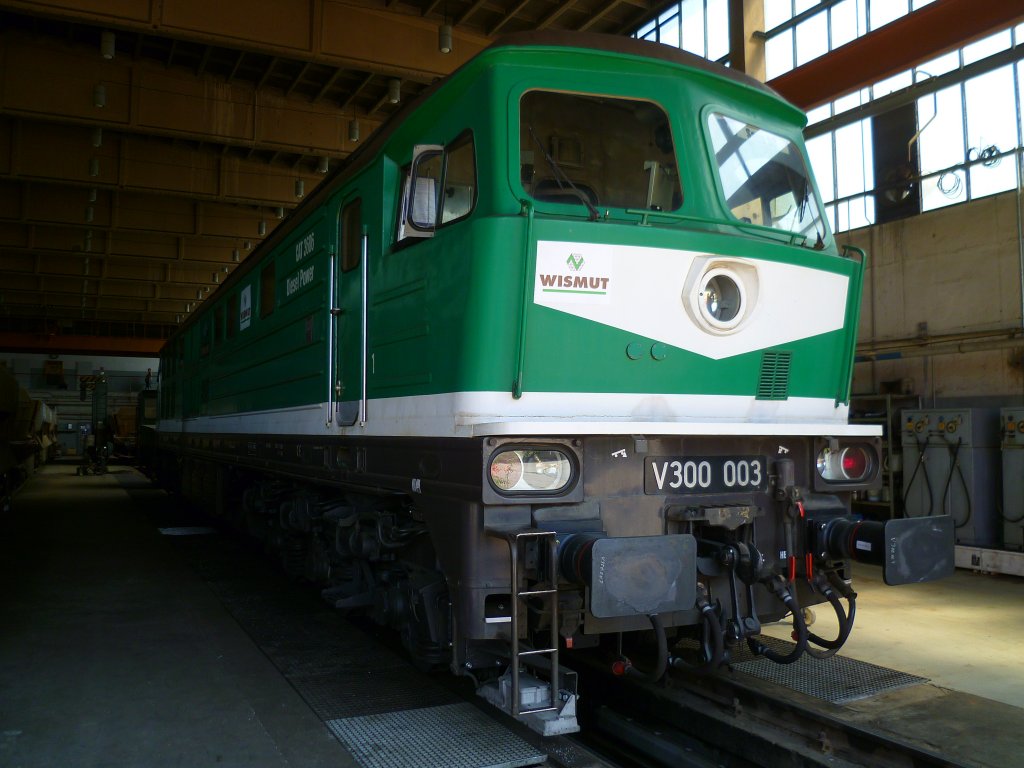 Am Samstag den 27.07.13 ging es mit der IG 58 3047 Glauchau (Veranstalter) und der Erzgebirgsbahn (642 237) auf eine Exkursionsfahrt zur Wismut. Hier die V300 003 die man in der Werkstatt in Lichtenberg sehen konnte. Alle Bilder wurden unter Aufsicht der Veranstalter erlaubt.