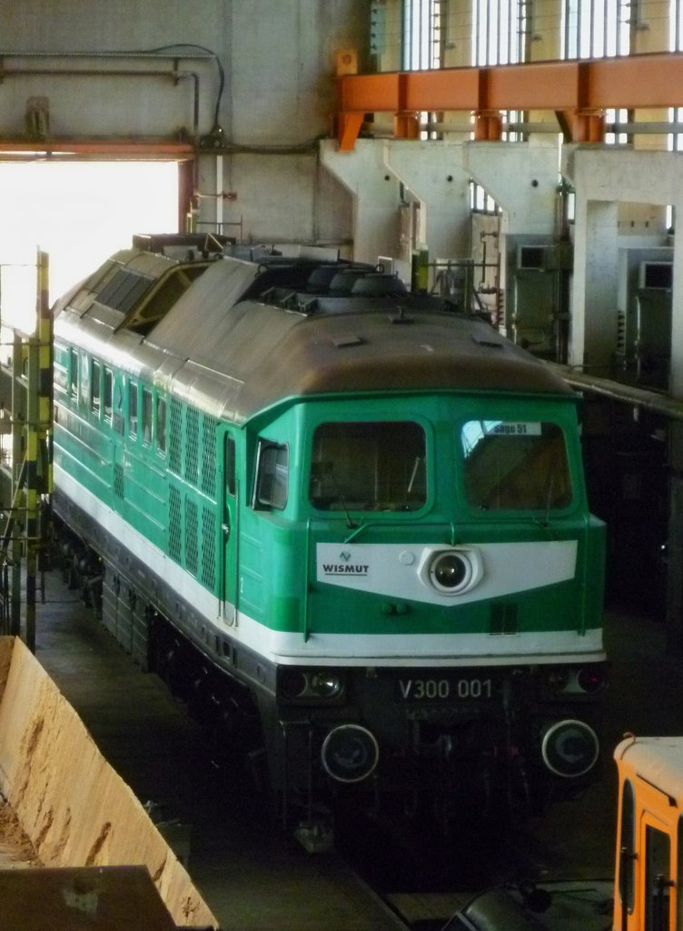 Am Samstag den 27.07.13 ging es mit der IG 58 3047 Glauchau (Veranstalter)und der Erzgebirgsbahn (642 237) auf eine Exkursionsfahrt zur Wismut. Hier die V300 001 die man in der Werkstatt in Lichtenberg sehen konnte. Alle Bilder wurden unter Aufsicht der Veranstalter erlaubt.