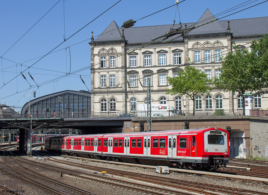 Die (etwas) andere S-Bahn: Wer 420 und 423 gewohnt ist, bekommt bei der Hamburger S-Bahn Abwechslung inform der Baureihen 472 bzw. 474 geboten, die der Werbung zufolge sogar mit 100% Ökostrom verkehren. Grund genug also für dieses Foto von 472 518, der am 23. Juli 2013 den Hamburger Hauptbahnhof verlässt.