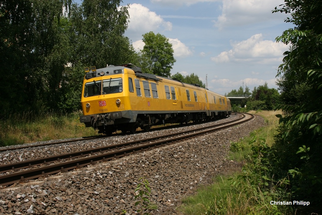 30.7.13 / 293 009-7 hängt am Zugschluss eines Messzuges / hier kurz nach der Ausfahrt LLP / Vorne hing die 232 223-8