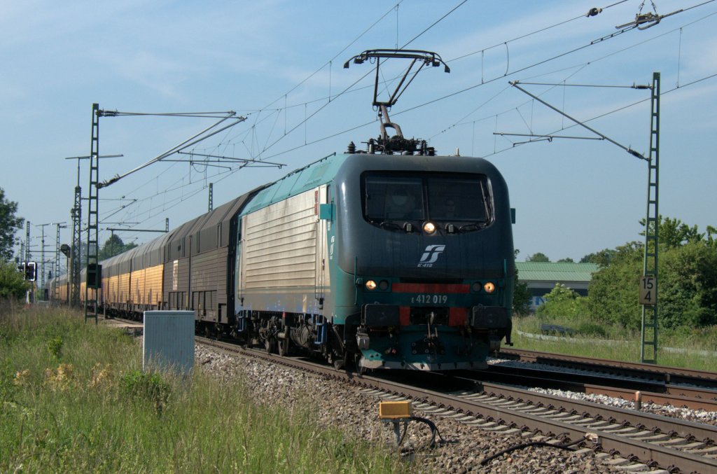 ES 64 F4-083 mit einem Autozug am 25.06.13 kurz nach der Durchfahrt in Schallstadt.