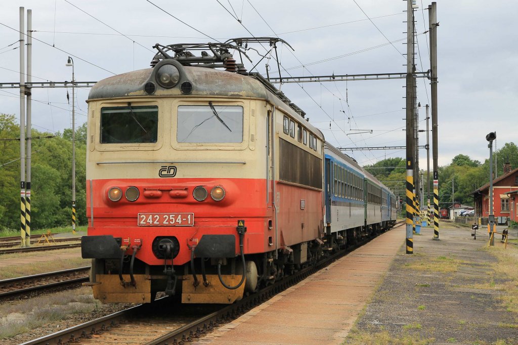 242 254-1 mit R 664 Brno-Plzeň auf Bahnhof Jindřichův Hradec am 27-5-2013.