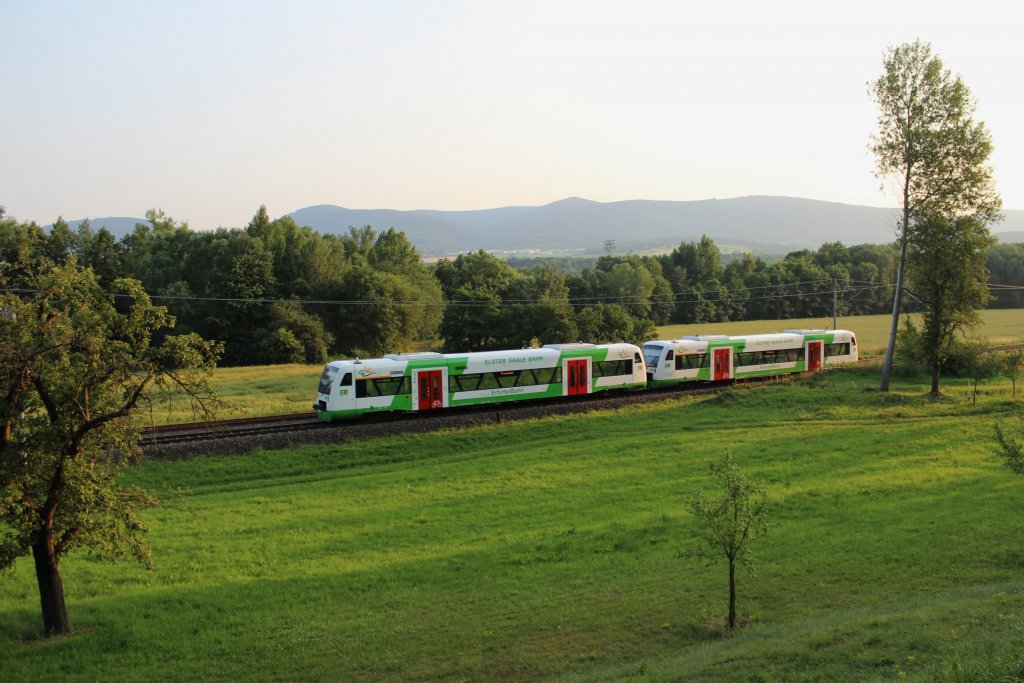 09.07.2013 Triebwagen der BR 814 als Regionalzug bei Horny Blatna.