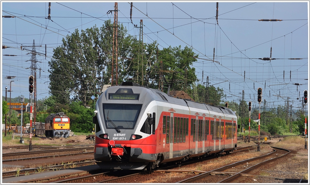 5341 017-1 nach Budapest Nyugati verlässt Vác. Im Hintergrund hat 628 333 Wochenendruhe. (12.05.2013)