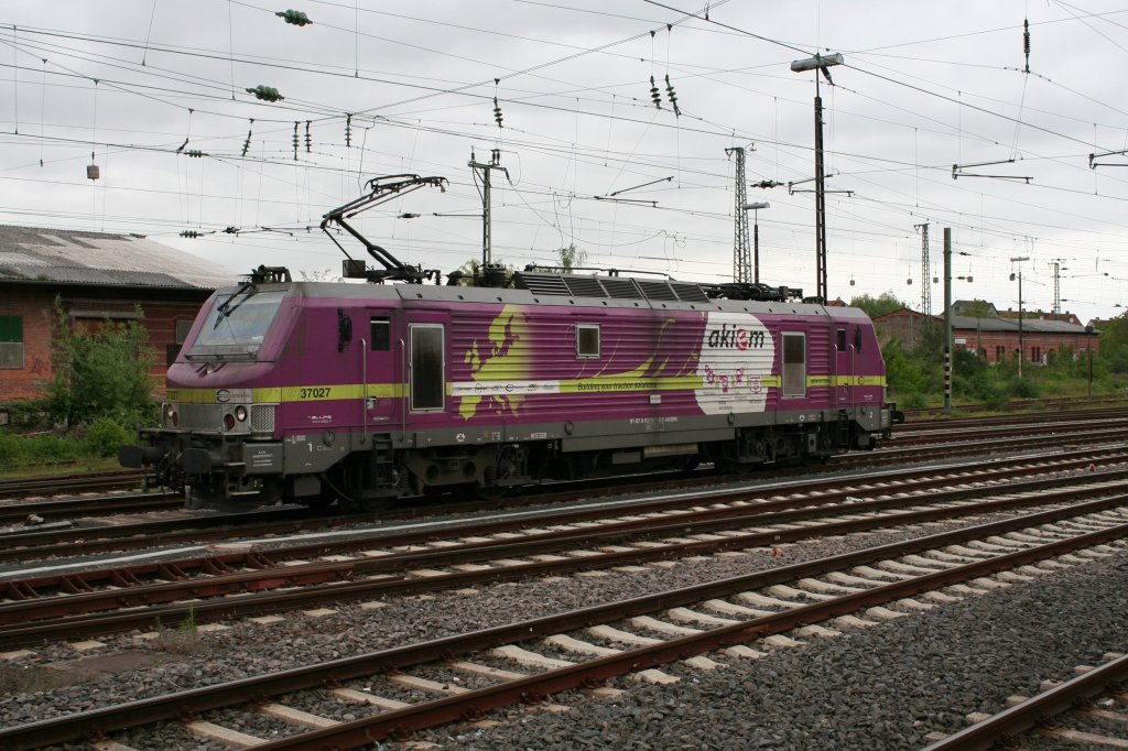 Die akiem-Lok 37027 am 22.05.13 in Worms Hbf. Sie war Lz Richtung Süden unterwegs.