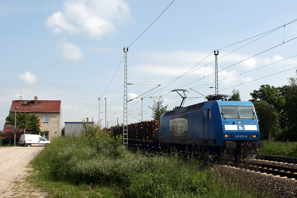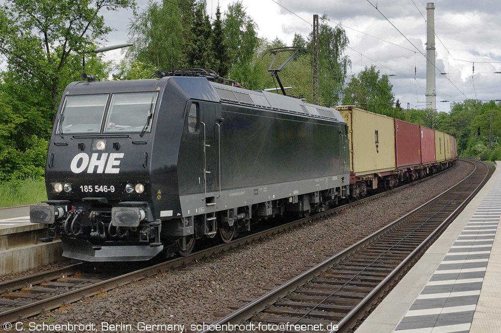 185 546 von OHE mit leerem Containerzug am 01.06.13 in Götzenhof