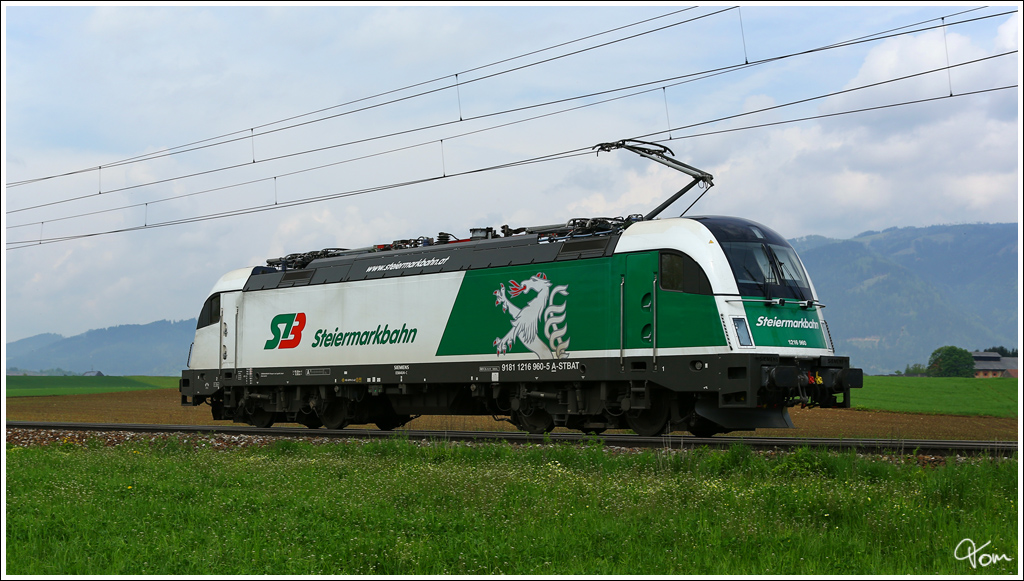Steiermarkbahn 1216 960 fährt als Lokzug SLZ 98070 von Bruck Leitha nach Villach Westbahnhof. Zeltweg 10.5.2013