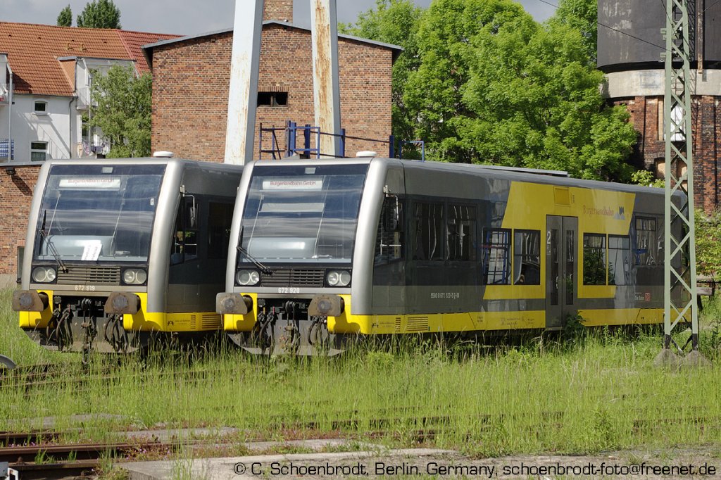 Stendal, "Burgenlandbahn" Dieseltriebwagen Typ LVT/S 672 919, 672 920 (9580 0672 920-5 D-DB), hinter der Drehscheibe, 2013,05,26