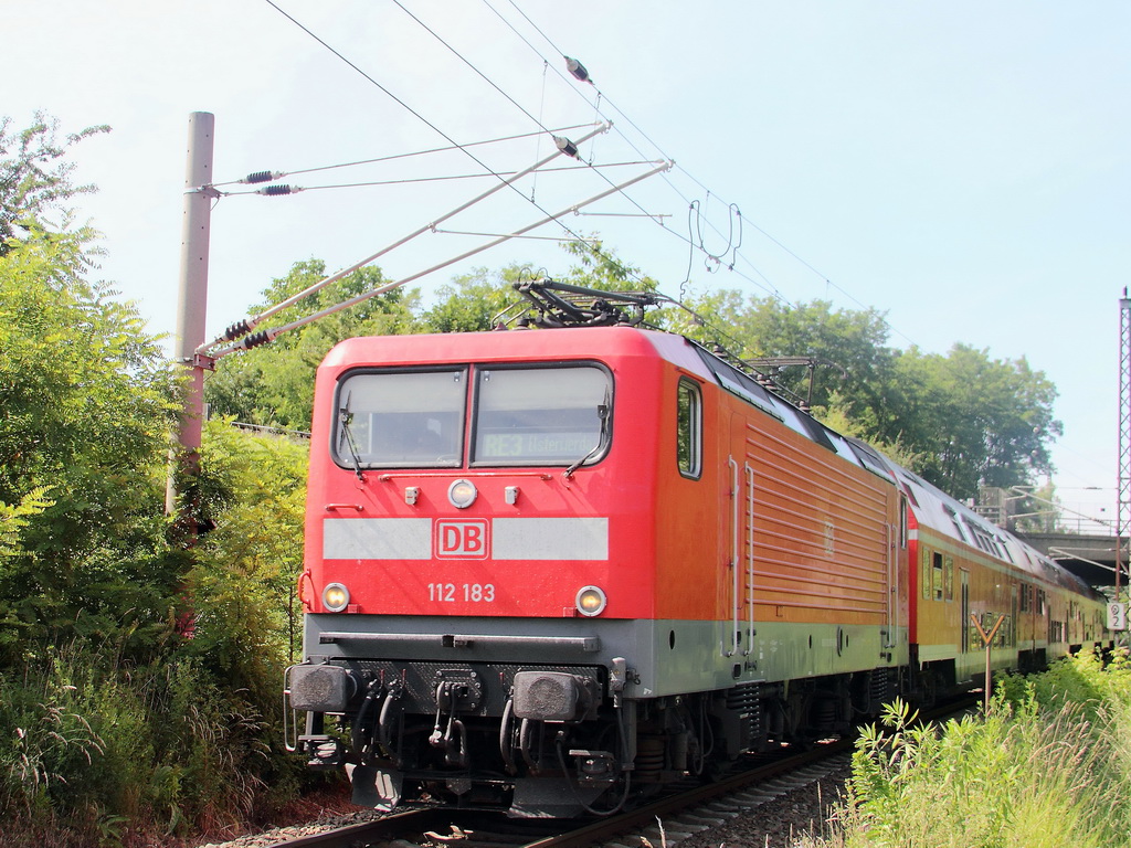 112 183 mit dem RE 3 nach Elsterwerder passiert am 17. Juni 2013 den Bahnübergang Tunnelweg in Blankenfelde (Bandenburg) kurz vor dem Bahnhof Blankenburg.