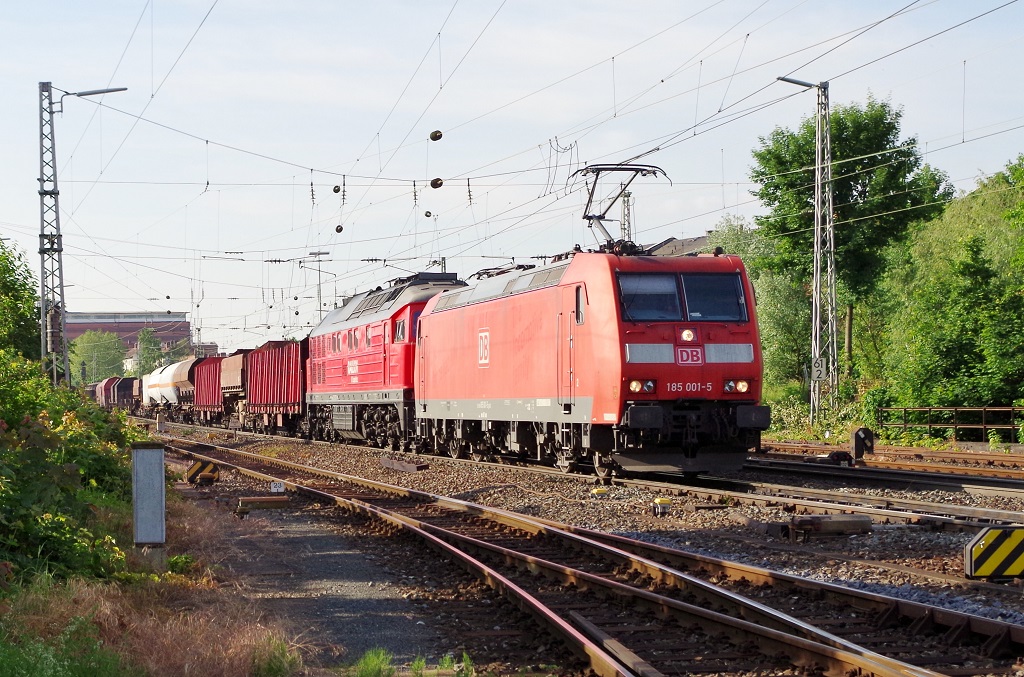 185 001 + 232 5xx mit gemischten Güterzug am 15.06.2013 in Bamberg.