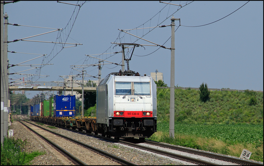 185.636 am 17.06.13 mit LTE SGAG 93267 von Terminal Wien Freudenau Hafen nach Ebenfurth, kurz vor dem Endbahnhof.