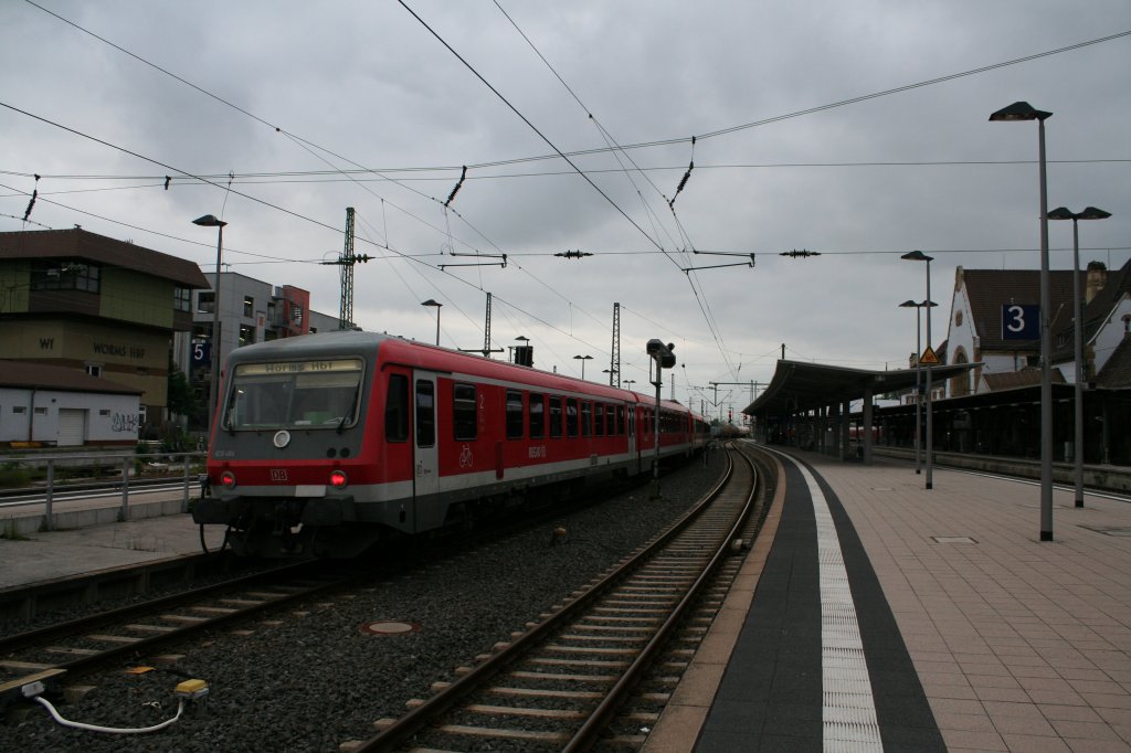 Bei planmäßigem Verkehr erreicht die Regionalbahn 3244 von Lindau nach Radolfzell nach genau 50 Kilometern das Ziel sowie das Ende bzw. den Anfang der Bodenseegürtelbahn in Radolfzell. Auf Grund eines Hangrutsches in Sipplingen und einer damit verbundenen Streckensperrung zwischen Überlingen und Sipplingen endet die Fahrt von Regioshuttle 650 317 vorzeitig in Überlingen. Aufnahme entstand am 06.06.2013 an der Haltestelle Friedrichshafen Landratsamt.