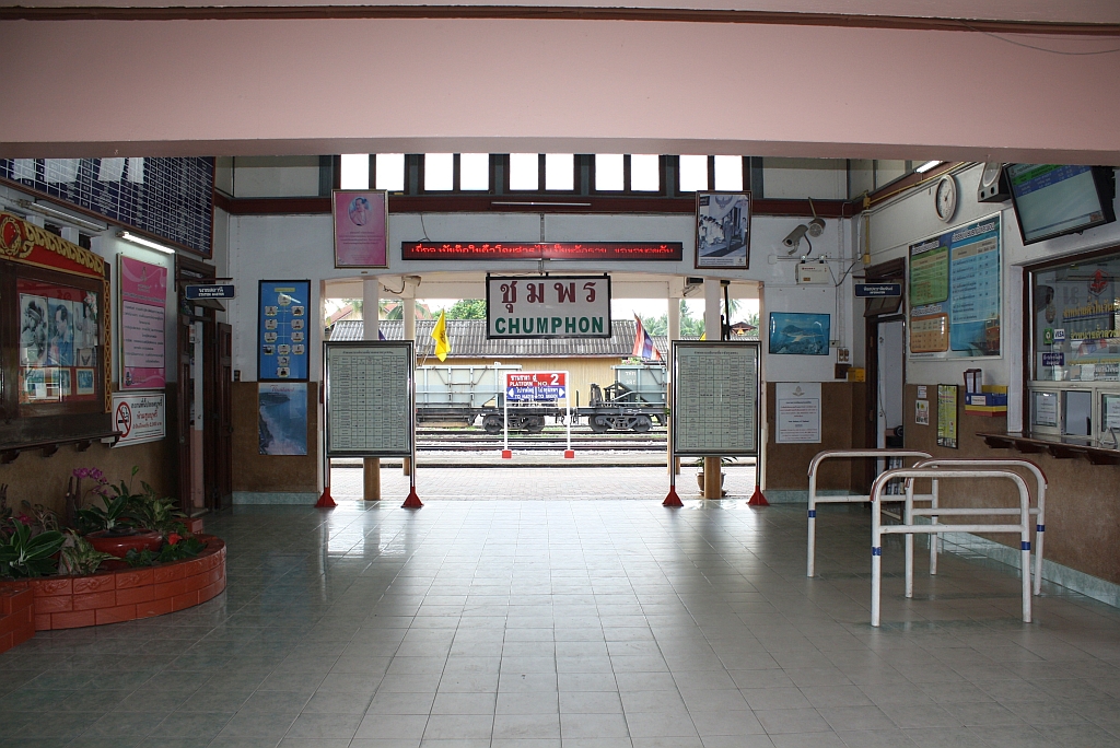 Auf der Zufahrtstrasse zum Bf. Chumphon sind gleich 3 Dampflokomotiven aufgestellt. Von vorne nach hinten erkennt man: SNL 9, SRT 178 und SRT 235. Bild vom 18.Mai 2013.