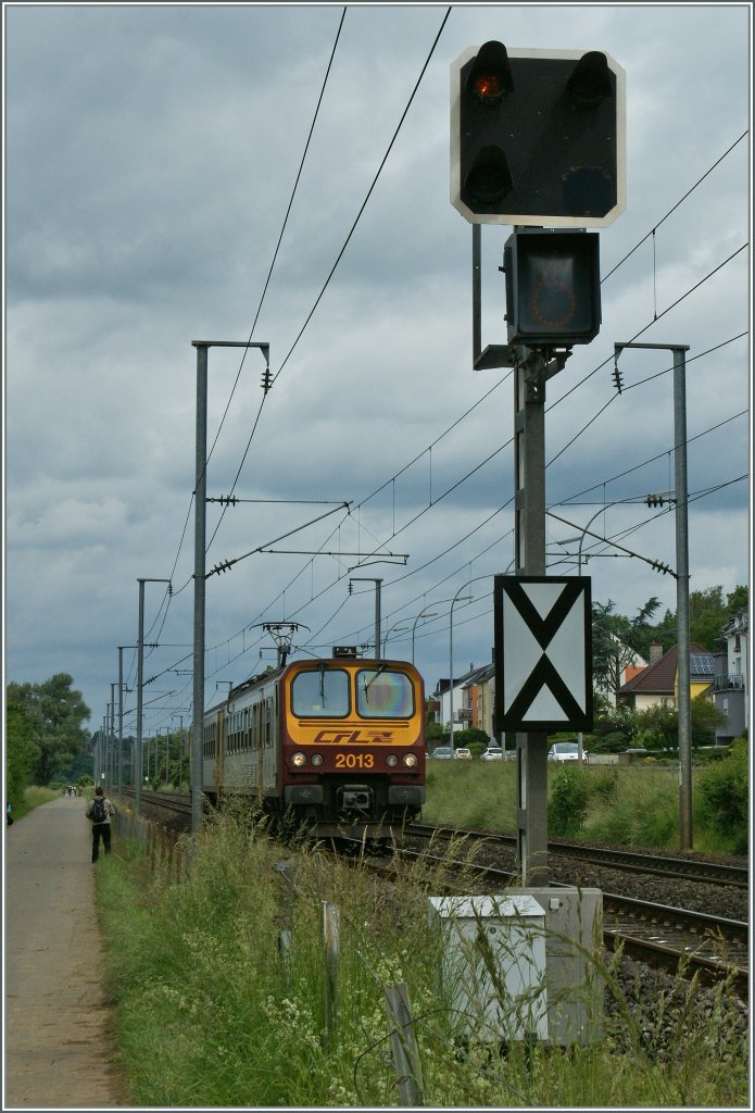 Der "Z2" 2013 auf der Fahrt nach Luxembourg beim Einfahrvorsignal von Mersch.