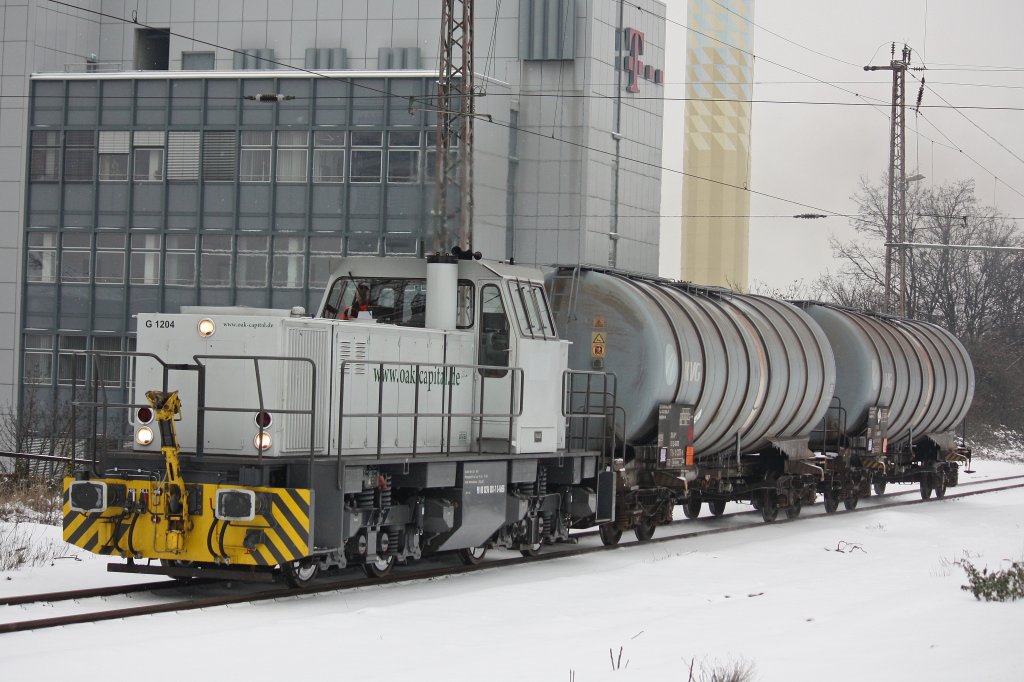 Oak Capital 276 003 am 15.1.13 mit zwei Kesselwagen in Duisburg Hbf.