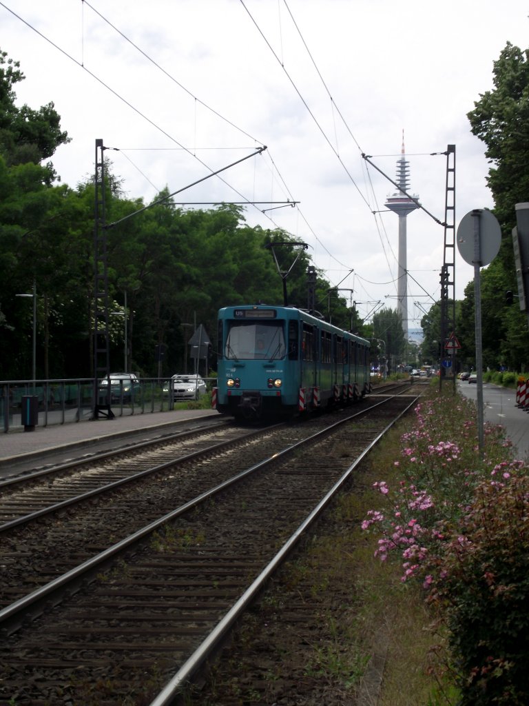 Noch schiefer als die "Schiefe Ebene" - Saarbahn Triebwagen mit Werbung für die 4 Radiowellen des Saarländischen Rundfunks erklimmt die Höhen des Saarbrücker Rastpfuhls. 16.06.2013 Saarbrücken-Malstatt / Josefsbrücke..