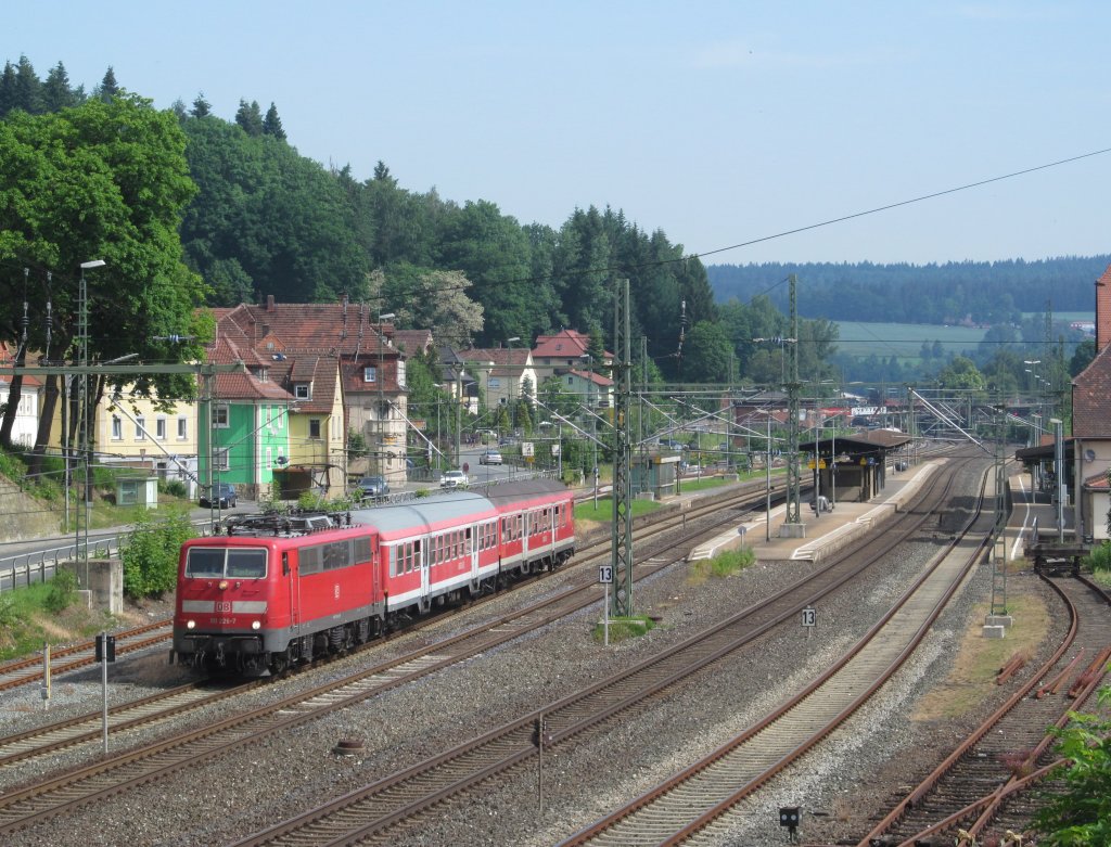 111 226-7 verlässt am 18. Juni 2013 mit einer Regionalbahn nach Bamberg den Bahnhof Kronach.