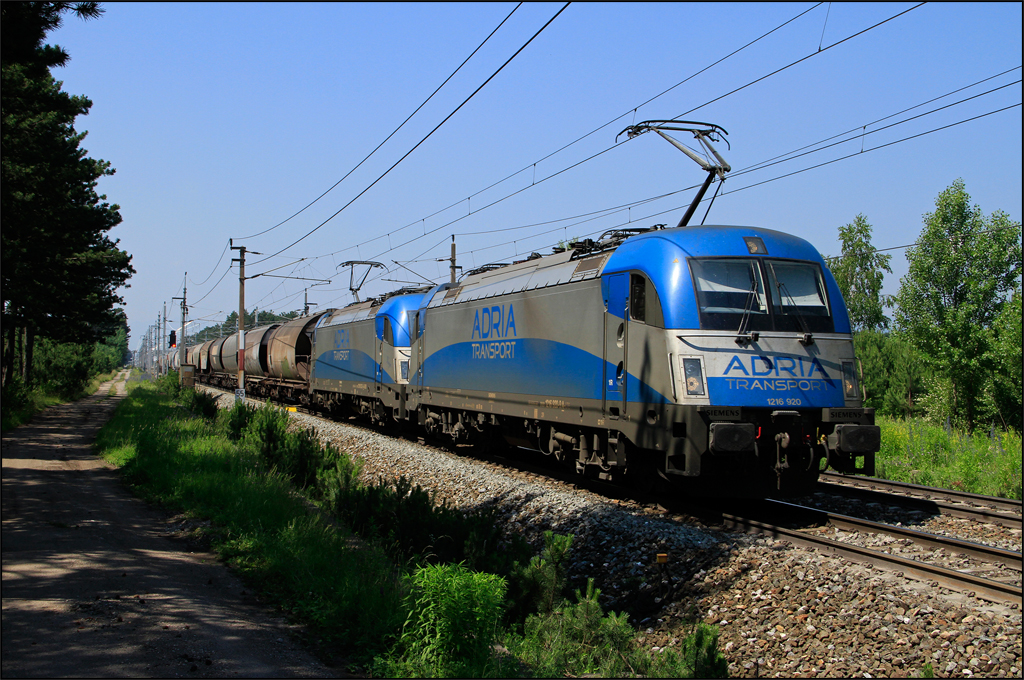 1216.920 und 1216.922 fuhren am 18.06.13 mit dem SLGAG 48184 (Tbv-Pta) durch St.Egyden Ri. Wr.Neustadt.