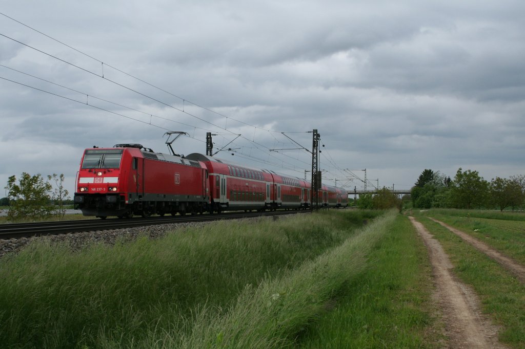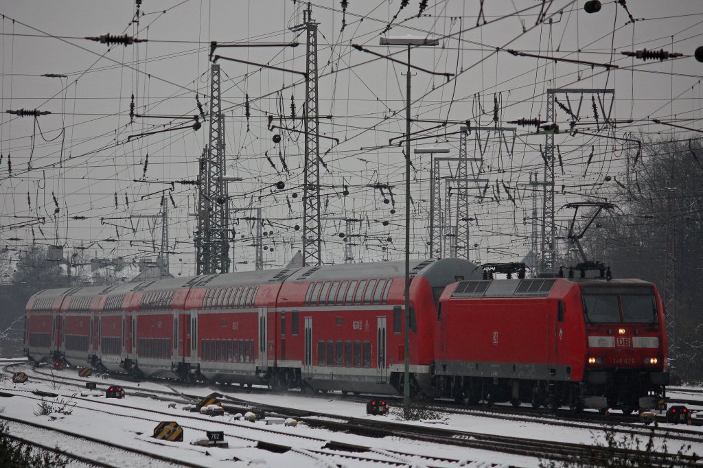 146 029 zieht am 15.1.13 einen Doppelstockzug als Leerfahrt durch Duisburg Hbf.