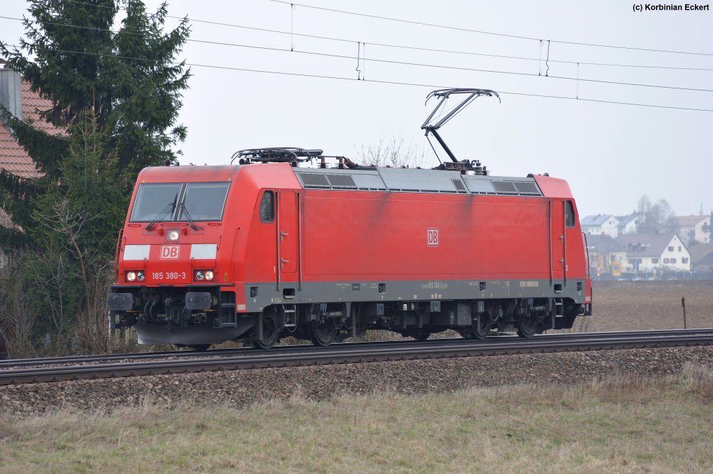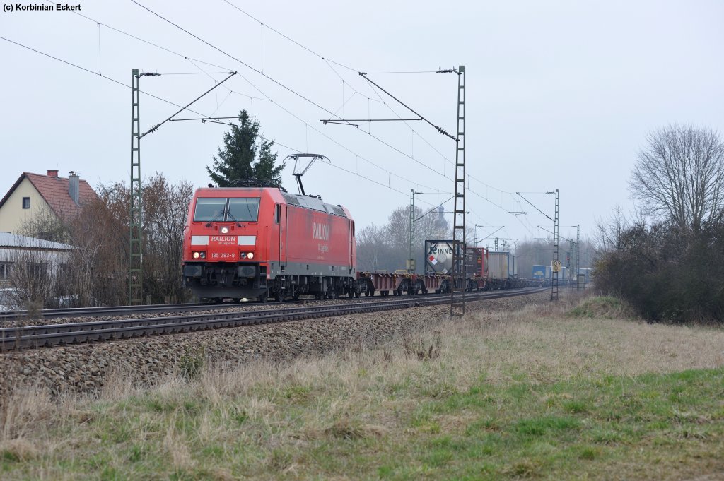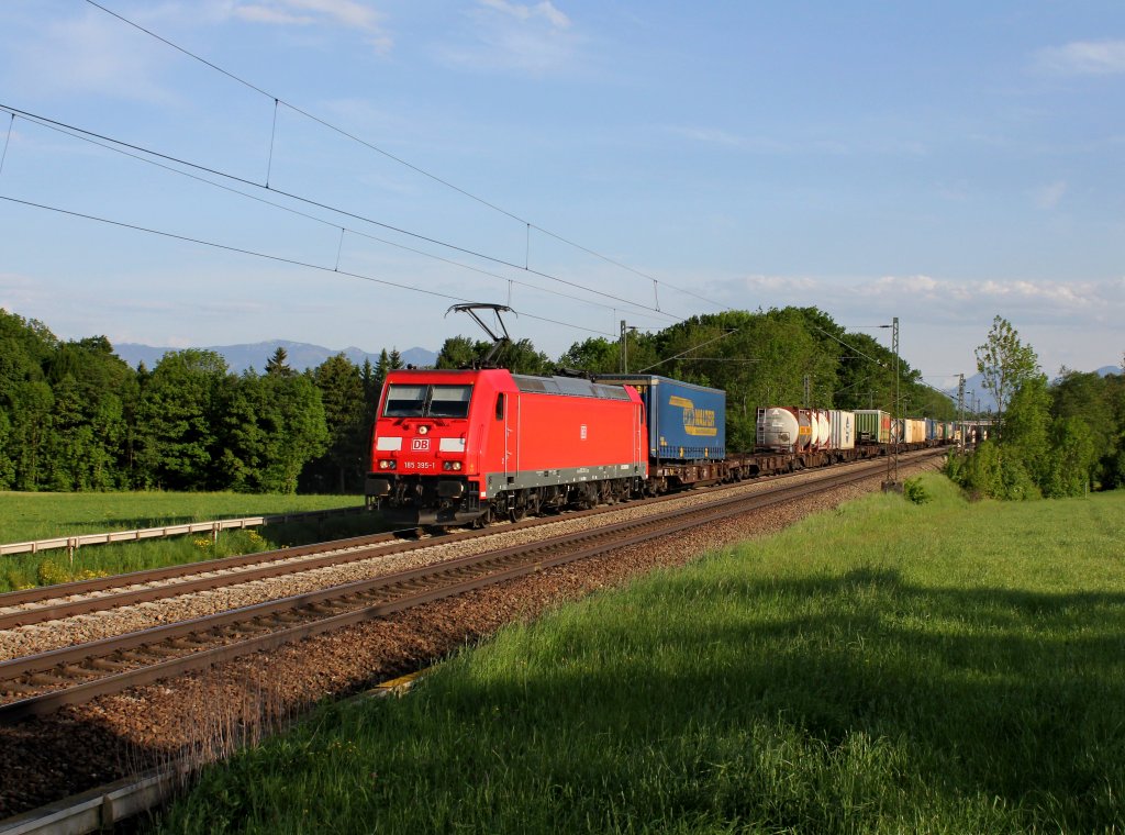 185 390-2 mit einem gemischten Güterzug bei Obertraubling, 05.04.2013