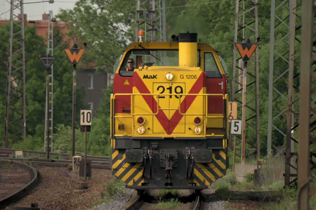 Und hier bringt die 152 grade ihren gemischten Güterzug in Richtung Skandinavienkai. Der links im Bild zu sehende 50er Roller eignet sich immer wieder gut für Gebiete wo man mit dem Auto nicht mehr so gut hinkommt. 14.06.2013 12:03:43 Uhr