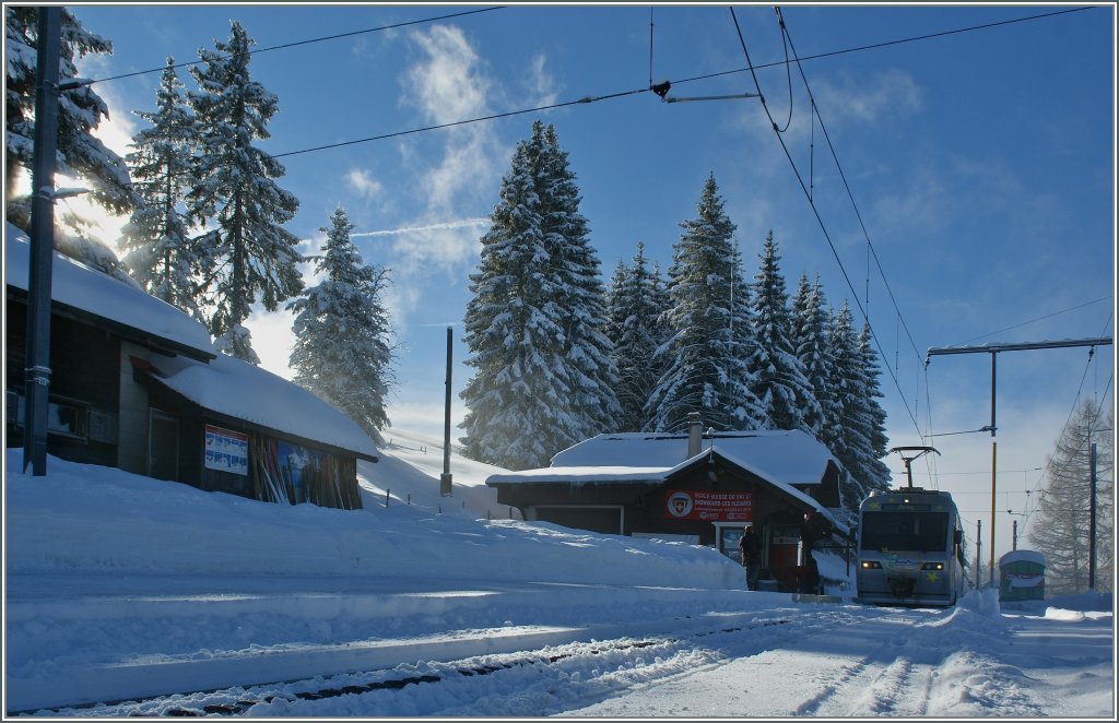 Zeit, den Kühlschrank zu räumen... Auf dem Station Oberalppass kreuzt sich unser Zug nach Disentis mit dem Gegenzug. 15. März 2013