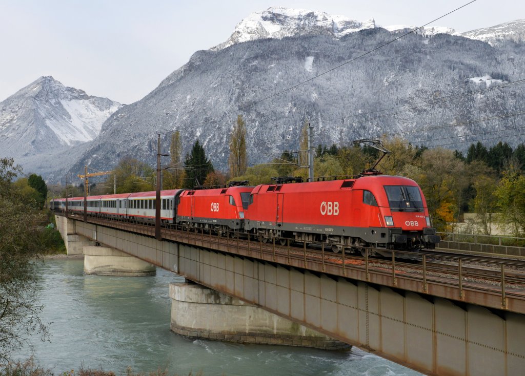 1016 037 + 1016 029 mit einem OIC am 30.10.2012 auf der Innbrücke bei Brixlegg.