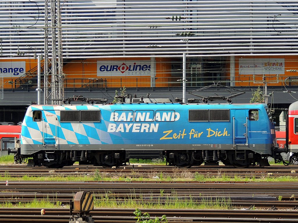 111 017-0 BAHNLAND-BAYERN,Zeit für Dich; im Bereich Bahnhof Hackerbrücke; 130607
