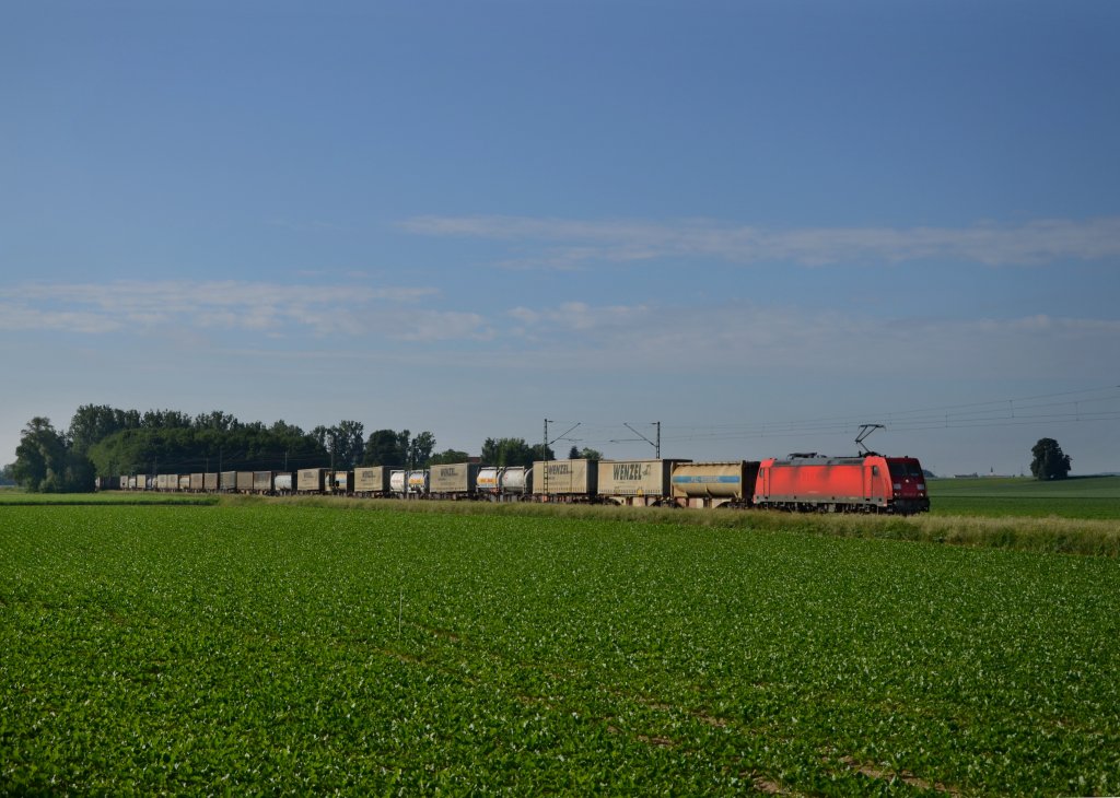 185 243 mit dem Wenzel-KLV am 15.06.2013 bei Langenisarhofen.