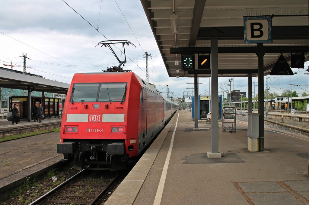 Hier schiebt 101 111-3 mit IC 2318 (Stuttgart Hbf - Dortmund Hbf) aus dem Stuttgarter Hauptbahnhof raus.