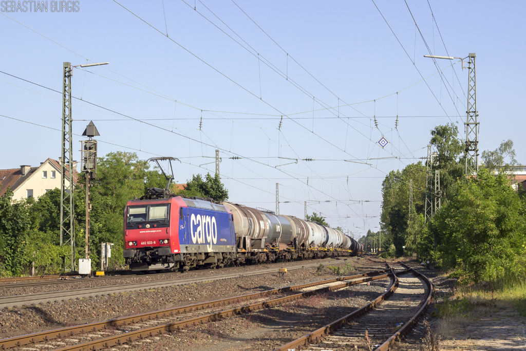 SBB Cargo 482 033-8 wartet mit einem Kesselwagenzug auf Einfahrt (Bamberg, 19.06.2013)