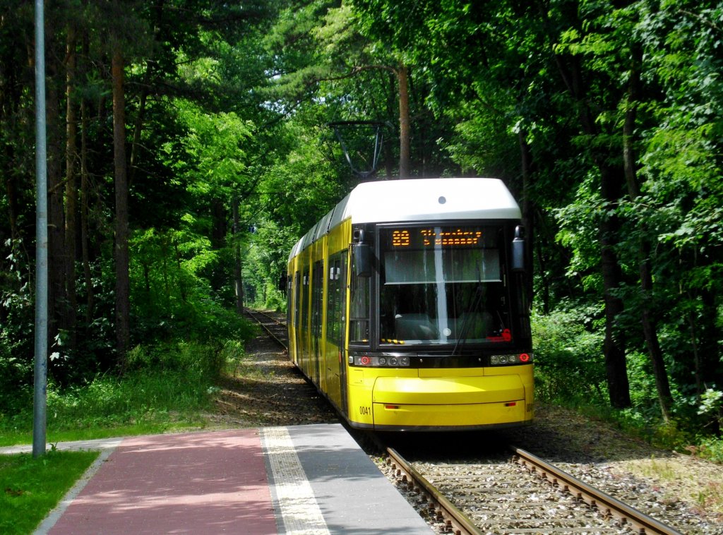 Strausberg: Straßenbahnlinie 89 nach S-Bahnhof Strausberg an der Haltestelle Strausberg Hegermühle.(18.6.2013)
