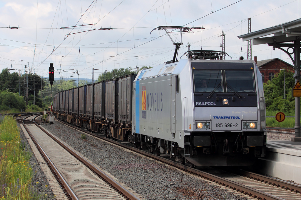 185 631 HGK mit Kesselwagenzug am 21.06.2013 bei Baiersdorf.