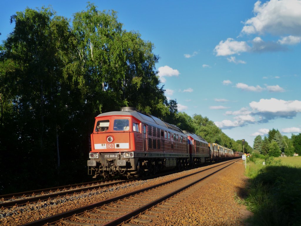 My 1138 von Altmark-Rail zieht am 21. Juni 2013 einen Bauzug durch Kronach in Richtung Lichtenfels.