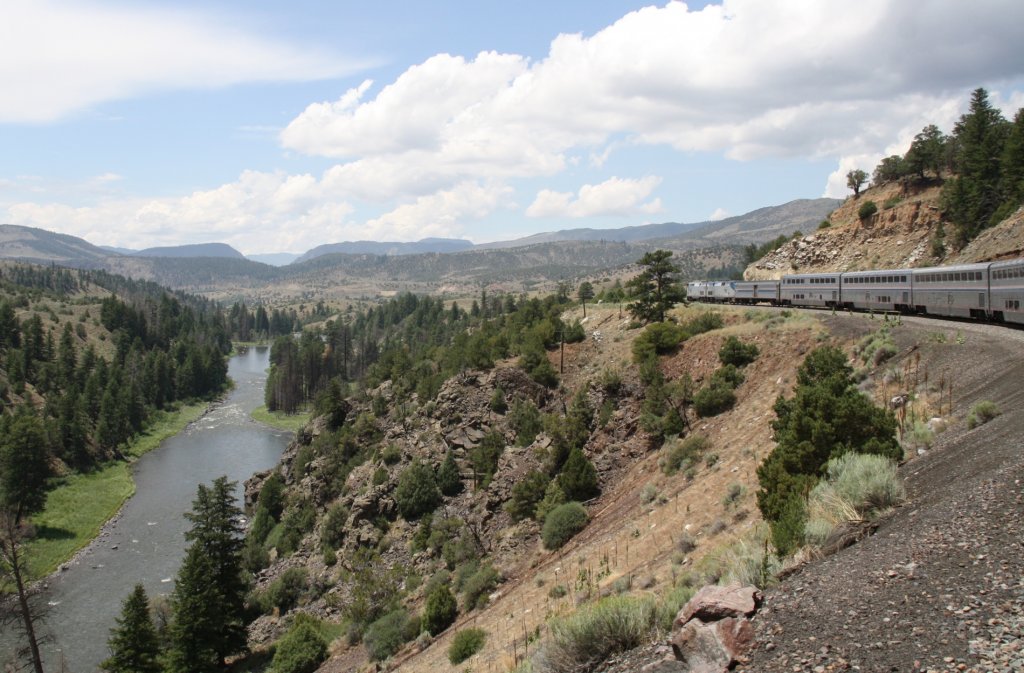 7.6.2012 Amtraks California Zephyr mit Genesis 172 und 122 am Colorado River zwischen Fraser und Glenwood Springs, CO