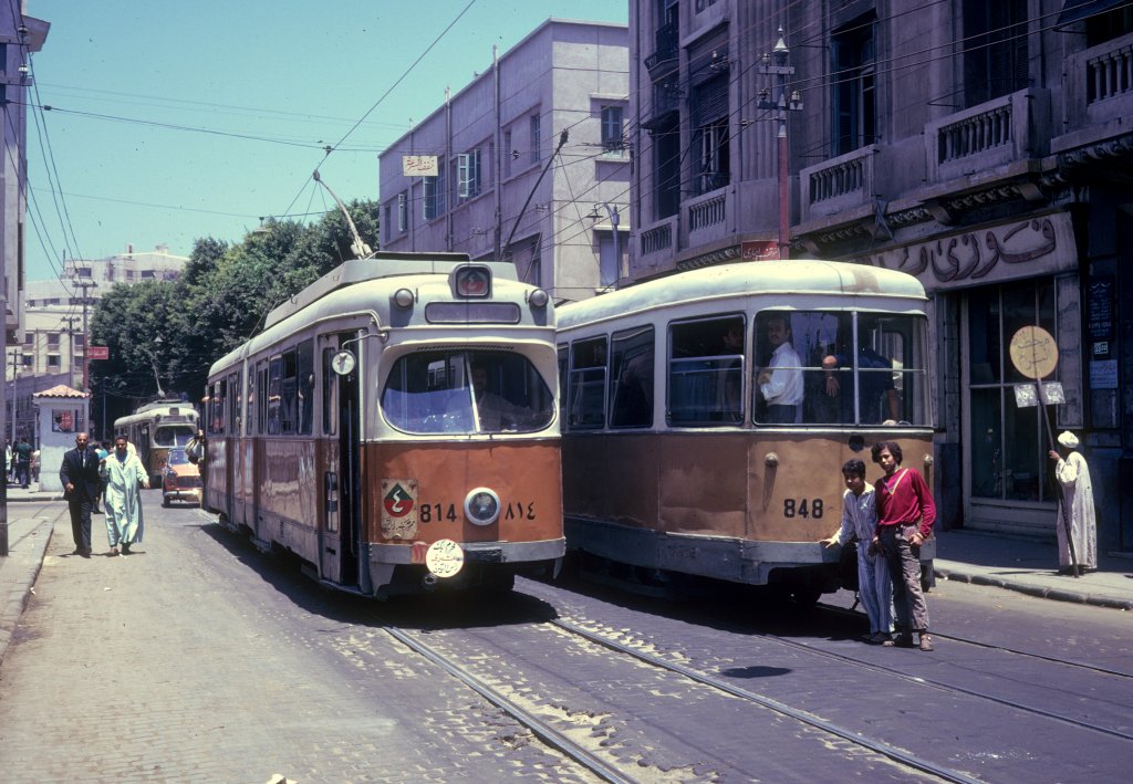 Alexandria SL 4 (Düwag-GT6 814, ex-Kopenhagener Strassenbahnen (KS) 814) / SL ? (Düwag-GT6 848, ex-KS 848) am 10. Juni 1974.