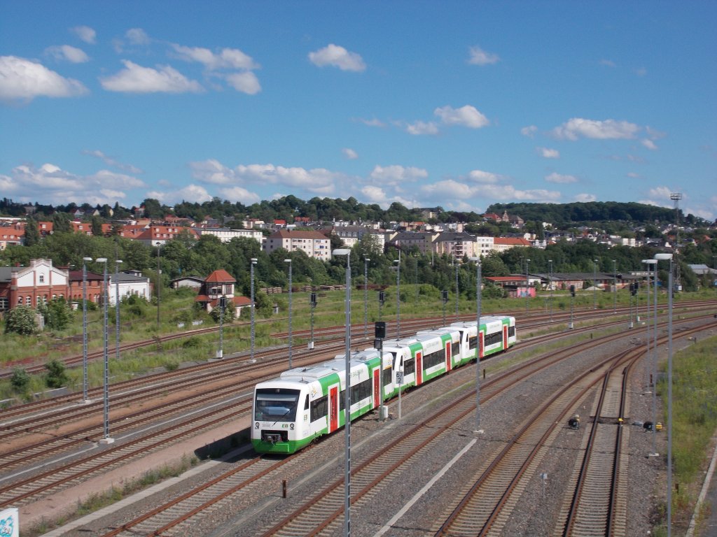 Zwei VT 312 Der Erfurter Bahn stehen in Gera auf Gleis 4a,dazu wurde ein Dritter VT drangehängt um sich auf den Weg nach Leipzig zu machen.Gera 22.6.2013