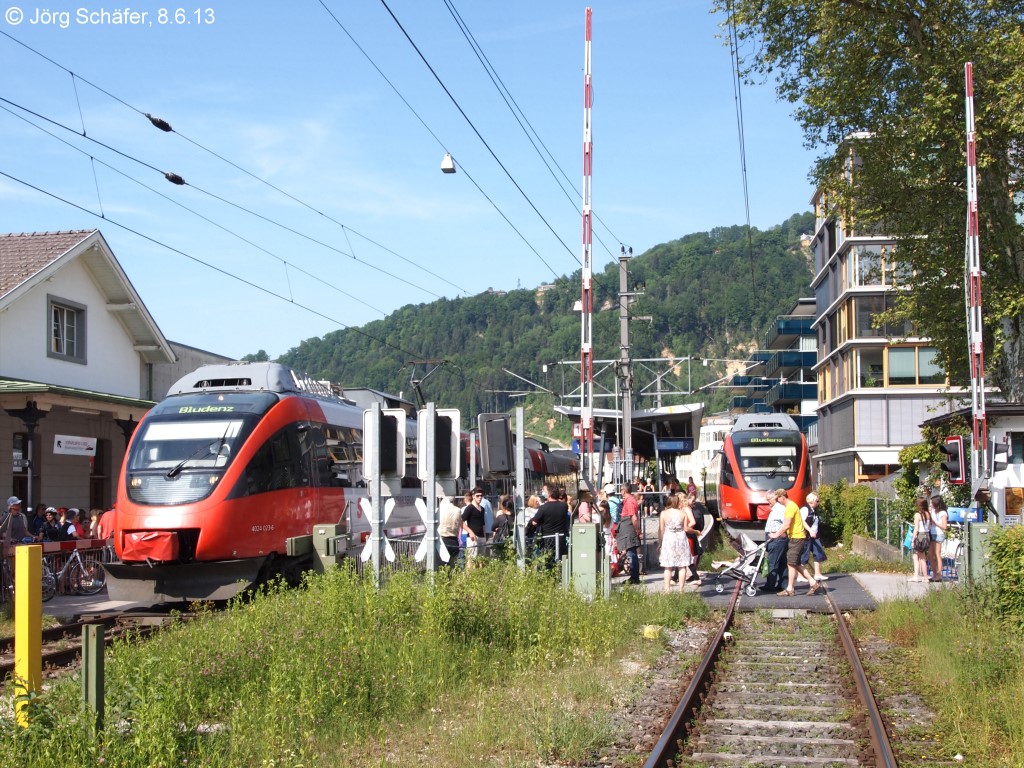 Die RABe 511 022 von Sargans nach Chur am 12.06.2013 bei Sevelen