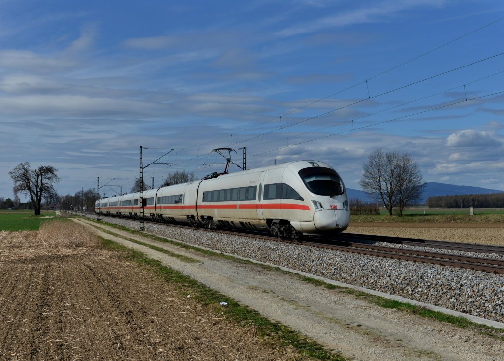 Ein ICE-T nach Wien West am 14.04.2013 bei Langenisarhofen.